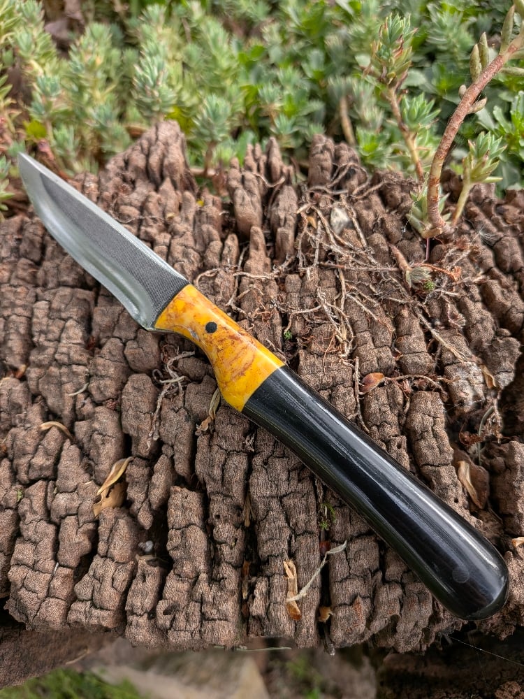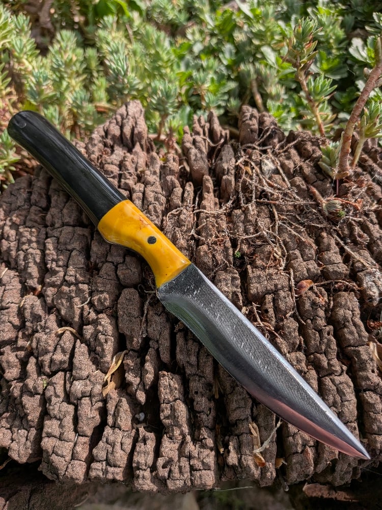 SINGLE EDGED, SCANDI GROUND AND MADE FROM A VINTAGE BASTARD FILE. SPINE HAS BEEN TAPERED FOR INCREASED PENETRATION.