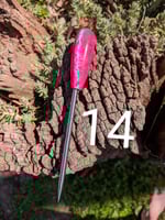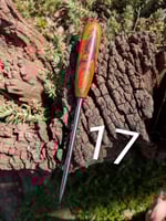 #13 AND #17 ARE IRONWOOD HANDLES, #19 IS SNAKEWOOD - ALL OTHER ARE ACRYLIC WITH A G10 BOLSTER.